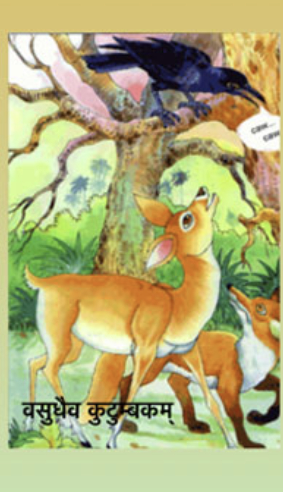 However, coming back to the present chant of vasudhaiva kutumbhakam, in the story the wily jackal quotes this very shloka to befriend the naive deer.